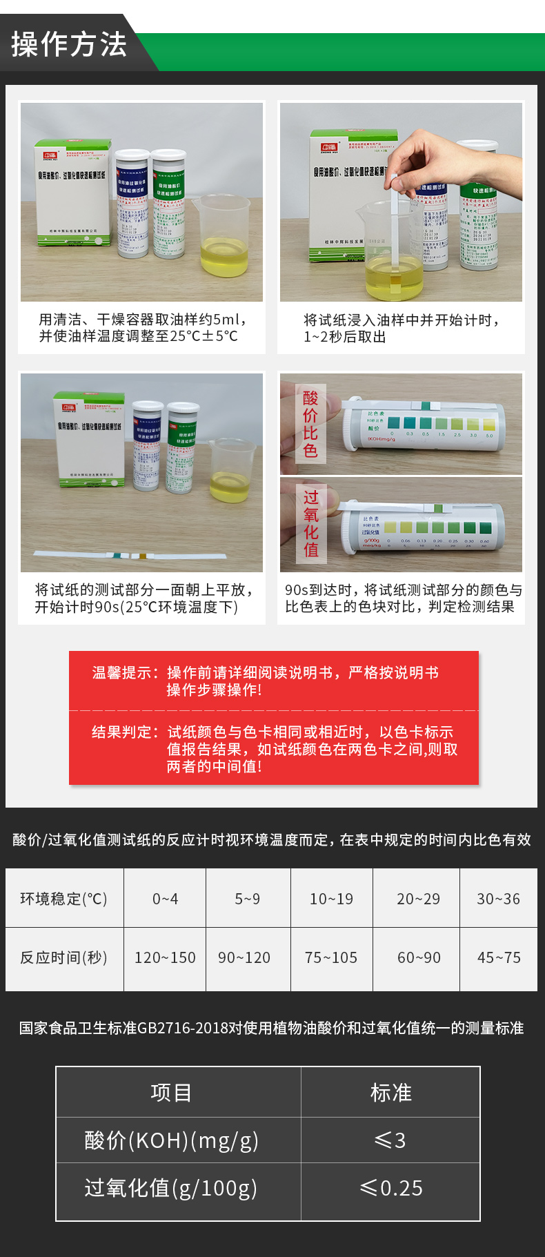 產品名稱:食用油酸價過氧化值快速檢測試紙 檢測食用油品質