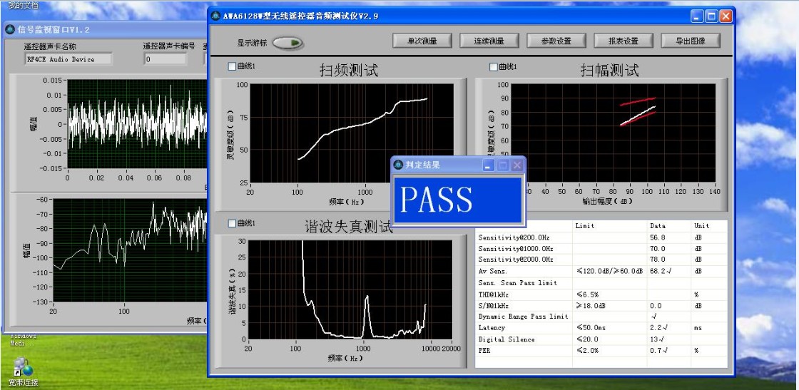 根據設定的門限自動判斷合格品或不合格品。不合格項目自動顯示X 字符,方便用戶找出不合格項目。測試結束后,簡潔直觀的顯示出PASS/FAIL,極大的提高了測試效率。軟件能導出測試報表和圖像。儀器由電聲測試儀主機、消聲箱和專用的分析軟件組成。