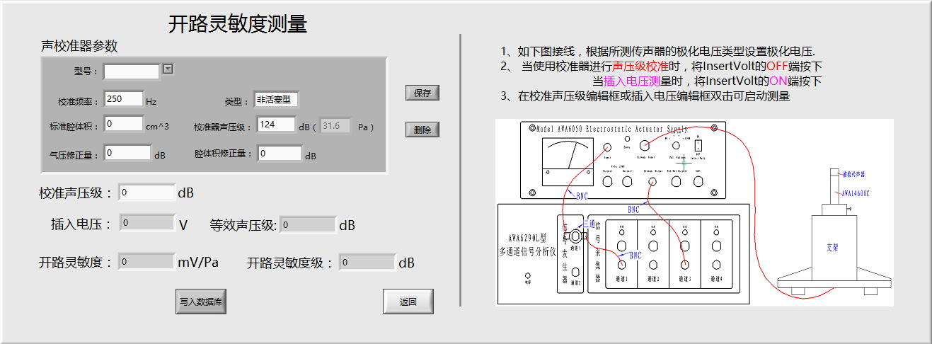 插入電壓法開路靈敏度測量 靜電激勵法掃頻測量傳聲器頻 相位測量 |