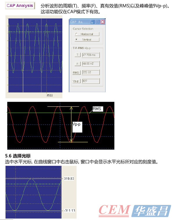 RMS:測量并記錄交流周期信號的電壓和泄漏電流的真有效值