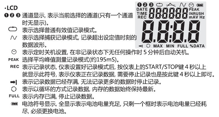 RTC:有真實時間顯示,軟件校準(zhǔn)。(若關(guān)機(jī)后再次開機(jī)時間仍然不正確就斷開所有測量,打開后蓋更換新的3V紐扣電池再次校準(zhǔn)即可)