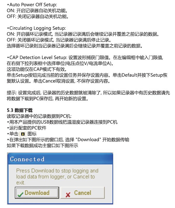 5、通過電腦的USB接口可以下載收集到的數(shù)據(jù)