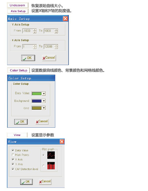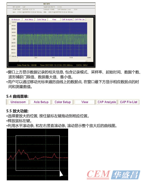 波形記錄:記錄超出設(shè)定電壓(電流)值的波形(764個數(shù)據(jù))